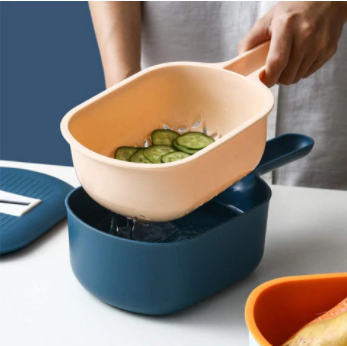 De 3 in 1 multifunctionele snijder heeft 4 verschillende verwisselbare messenhandbescherming, afvoermand en opvangbak.
