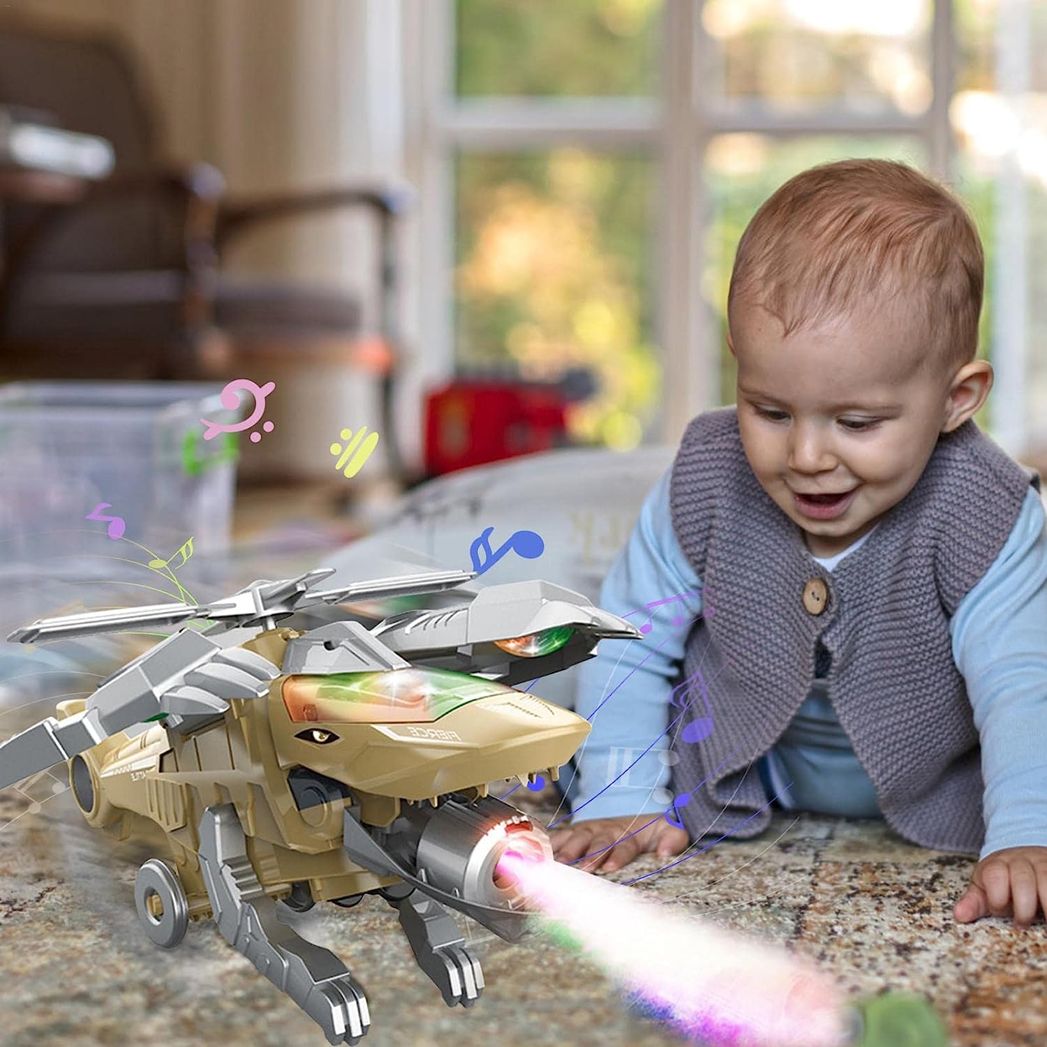 Bereid je voor op een adembenemend spektakel als de Nousa Dino - LED Transformerende Dinosaurus Helikopter Speelgoed ondergaat een buitengewone metamorfose en veranderingen voor de ogen van je soort in een woeste dinosaurus. Om het nog groter te maken, zorgen de levendige LED-lampjes voor een visueel display dat moeiteloos hun aandacht trekt en hen onderdompelt in een wereld vol opwindend avontuur. Bereid je voor op een speelervaring die hen zal betoveren!