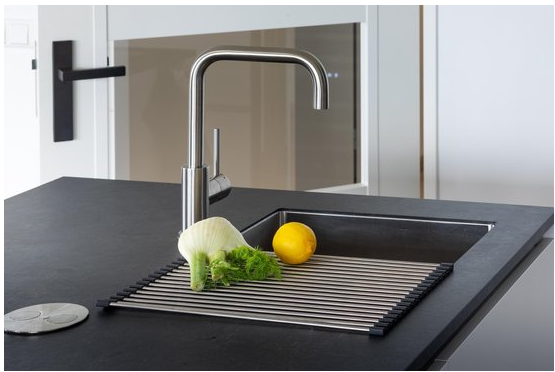 Ook is dit ruimtebesparend op jou keukenwerkblad, omdat je de ruimte boven de wasbak ook gebruikt.