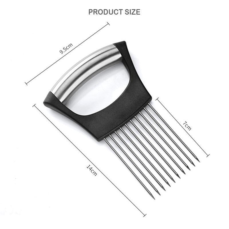 Niet alleen ontworpen voor uien. kan ook worden gebruikt voor andere harde ingrediënten zoals fruit, aardappelen, wortelen, citroenen en zelfs knoflook. De groentehouder kan ook worden gebruikt als vleeshamer. De lange stalen naald dringt diep door in het vlees om de smaak ervan te verbeteren. Het is ook gemakkelijk schoon te maken na gebruik. Licht in gewicht, iedereen kan het gebruiken om te koken.